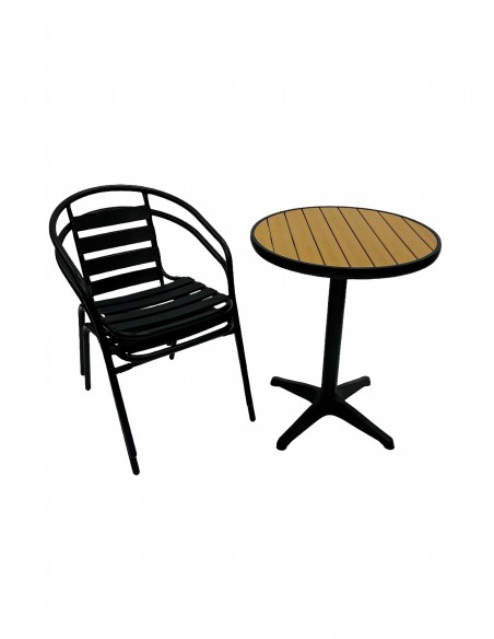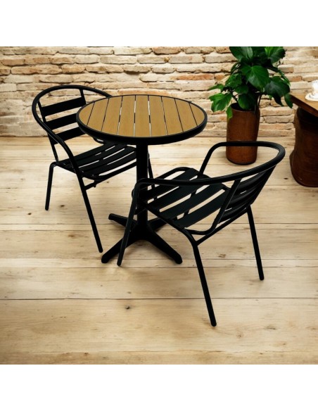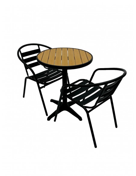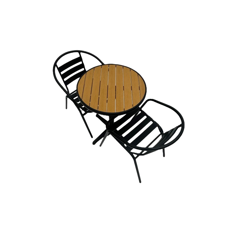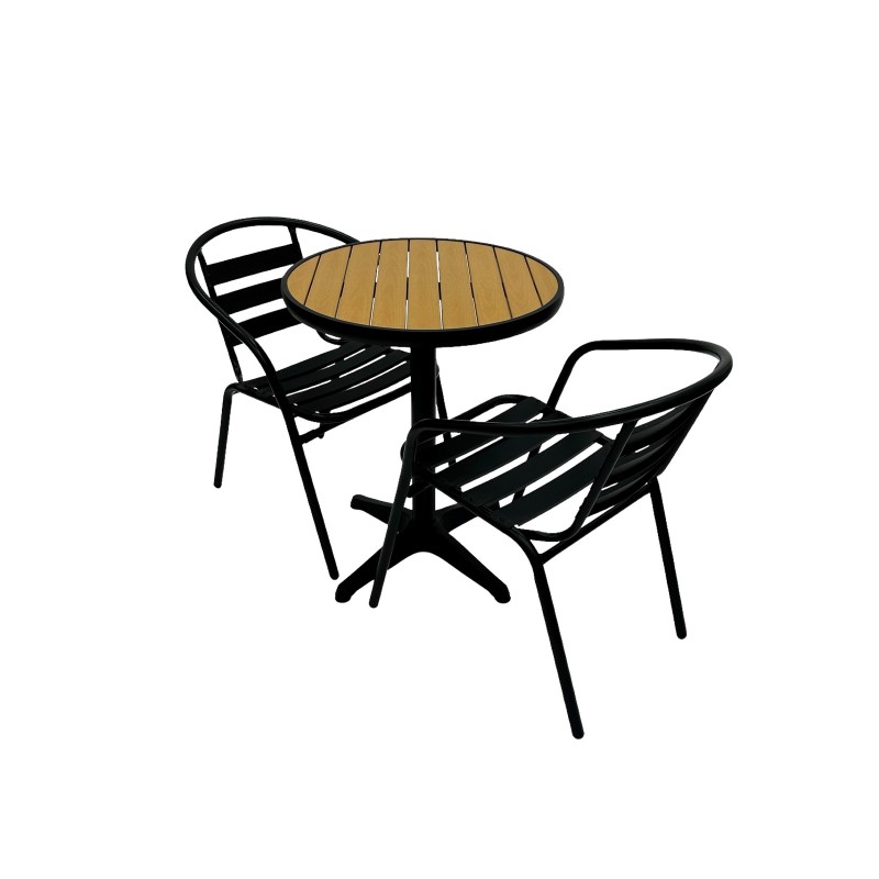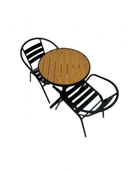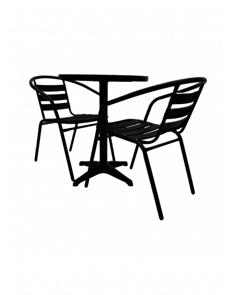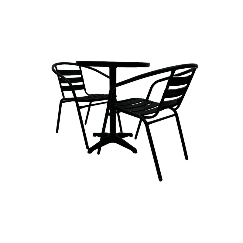 This stunning Balcony Furniture Set comprising of one 60cm round bistro table and two of the black steel chairs.