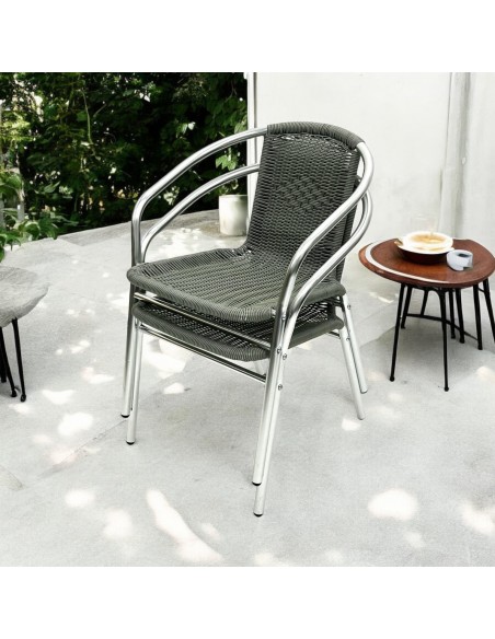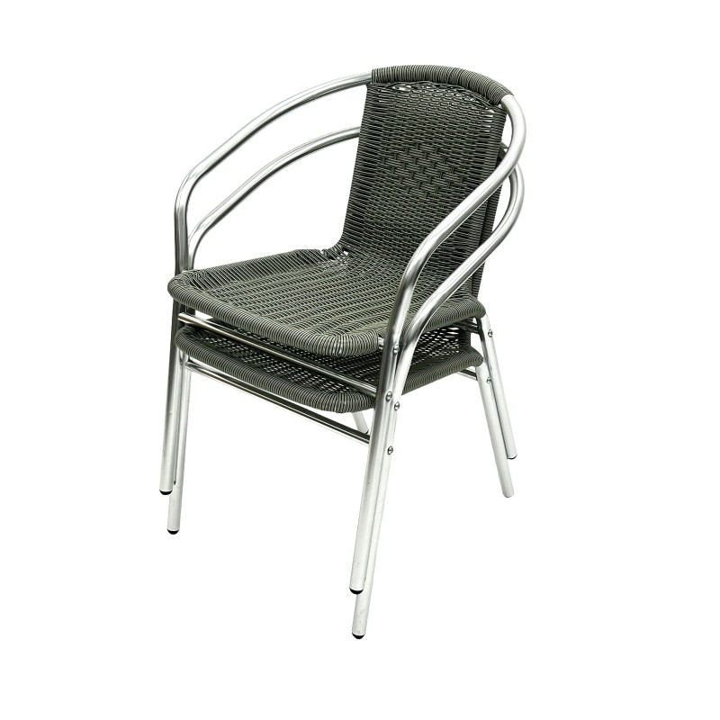 Our BE Furniture Rattan Aluminium chairs are designed for commercial and home use and are one of our best selling chairs. Built from aluminium with a grey plastic rattan seat and back, these chairs last for years and are resistant from corrosion and general wear and tear.