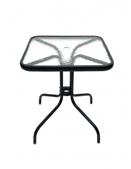 This weather-resistant tempered Square Glass Garden Table table will be a great choice for dining in the garden, on the patio, or in cafes and restaurants. These tempered glass tables have a 60 cm square table top with a 5 cm hole in the centre for a parasol, which can be purchased separately from us here at BE Furniture Sales. These table are easy to keep clean and have a metal frame so can be used indoors or outdoors all year round. These glass tables are also light weight making them easy to move around.