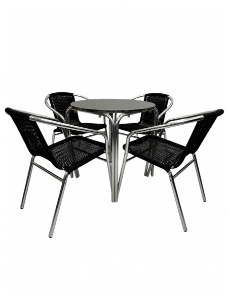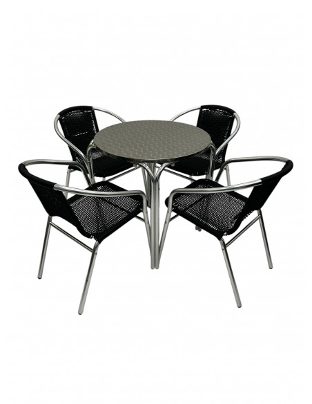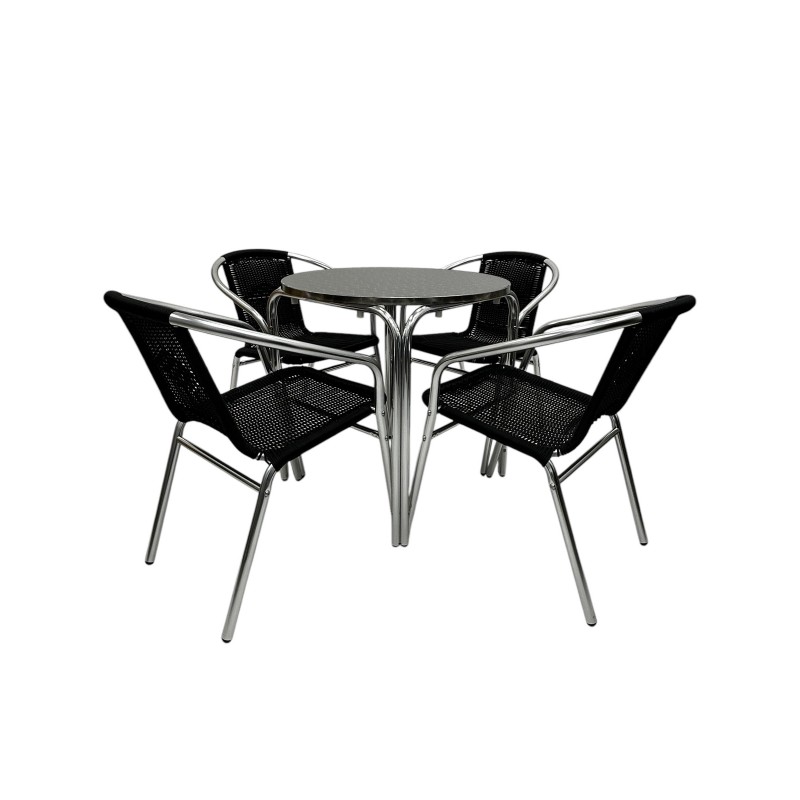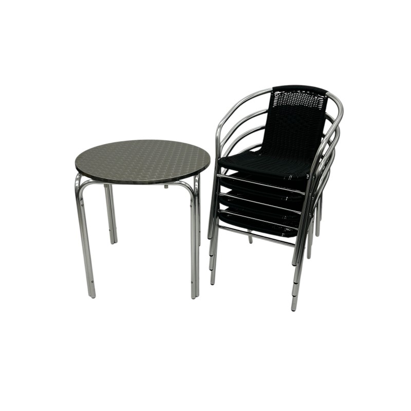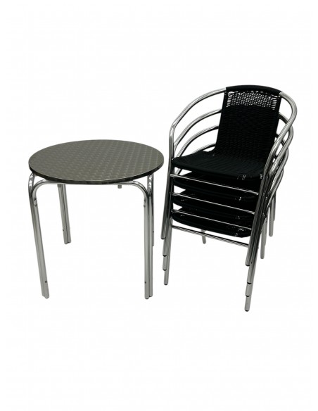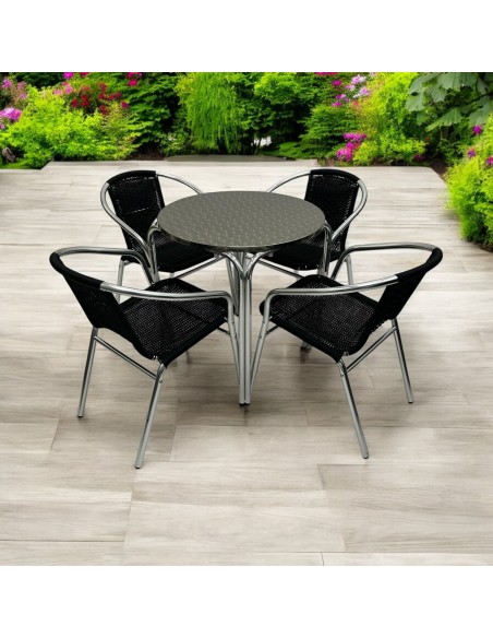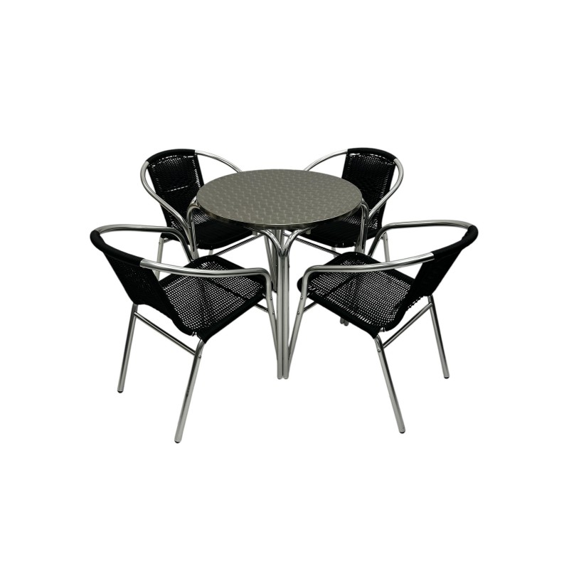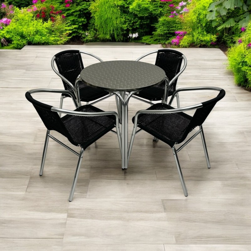 Our BE Furniture Black Rattan Garden Furniture Set comprising of one 70cm round aluminium bistro table and four of the black rattan aluminium chairs.