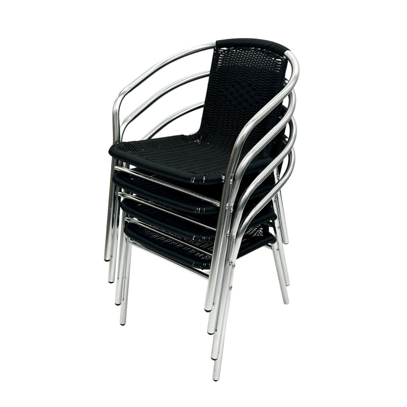 Our BE Furniture Rattan Aluminium chairs are designed for commercial and home use and are one of our best selling chairs. Built from aluminium with a black plastic rattan seat and back, these chairs last for years and are resistant from corrosion and general wear and tear.