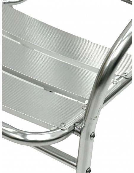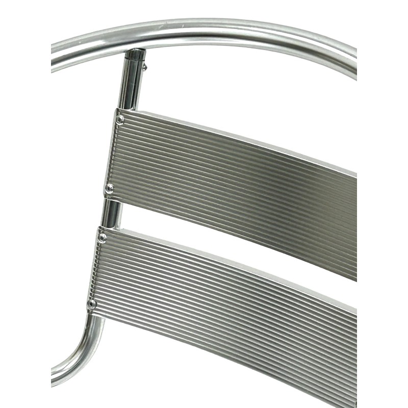 These aluminium bistro chairs are suitable for use in the garden or for cafe’s, fish & chip shops, large sporting events, festivals and restaurants etc. They have plastic feet to prevent scratching the floor. The seat height is 43 cm and they stack tightly for storage.