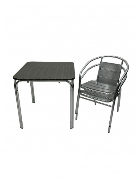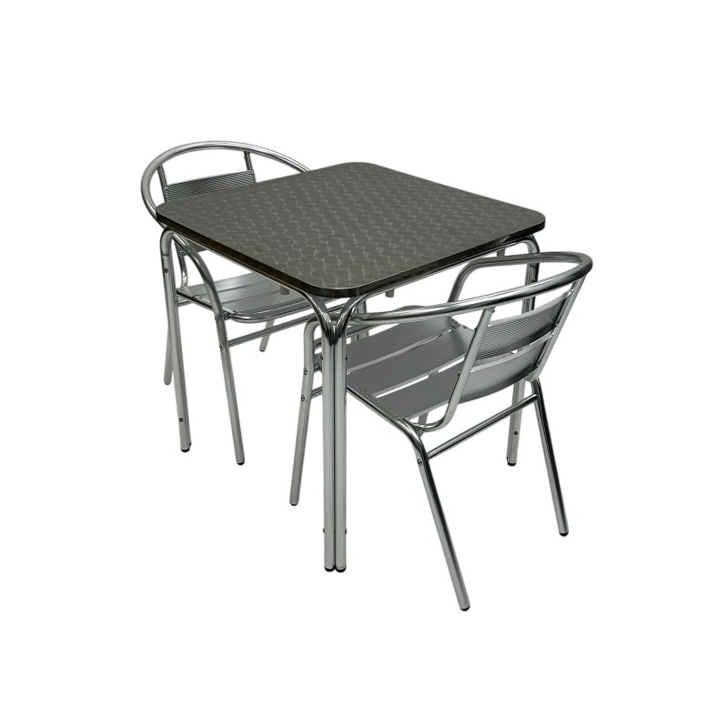 One of our most popular furniture sets, the Aluminium Catering Furniture Set comprising of one 70cm square aluminium bistro table and 4 of the standard aluminium chairs
