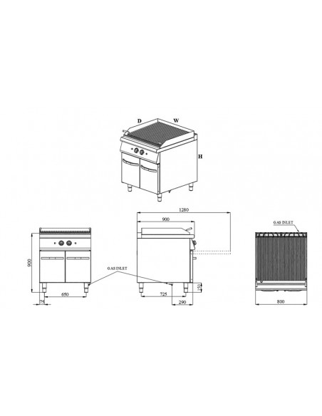 900 Gas Pro Lavastone grill, 800mm wide 2-side grid with open cupboard Natural Gas Chargrill
