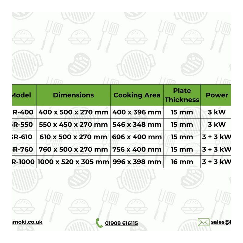 COOKING AREA: 756 x 400 mm