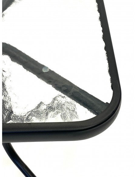 This weather-resistant tempered Square Glass Garden Table table will be a great choice for dining in the garden, on the patio, or in cafes and restaurants. These tempered glass tables have a 60 cm square table top with a 5 cm hole in the centre for a parasol. These table are easy to keep clean and have a metal frame so can be used indoors or outdoors all year round. These glass tables are also light weight making them easy to move around.