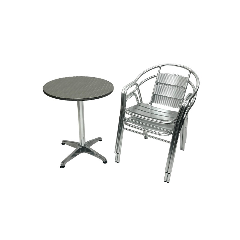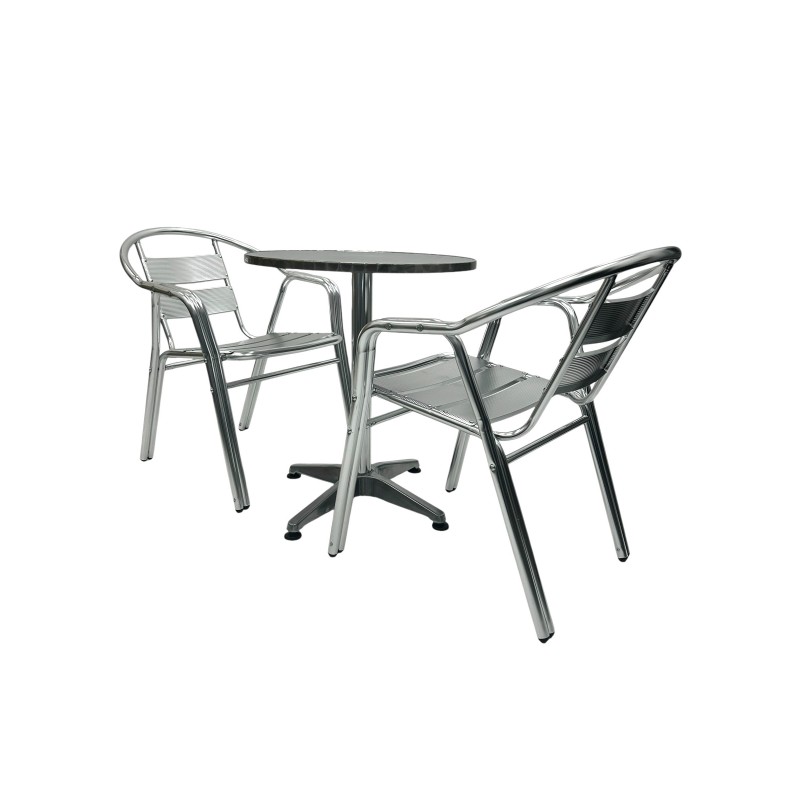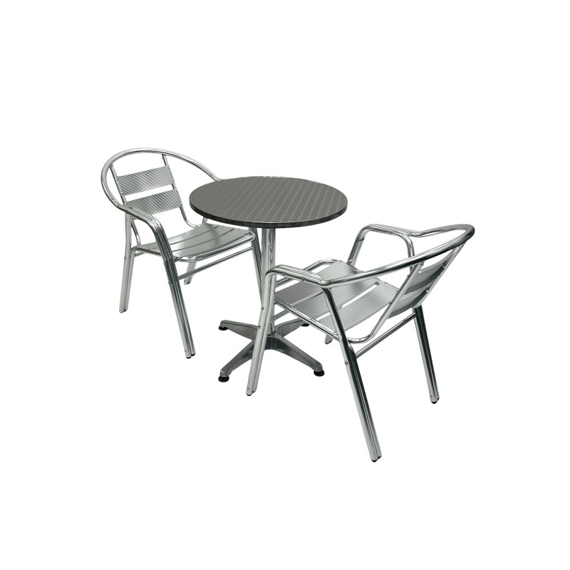 Our premium quality Aluminium Balcony Set comprising of one 60cm round aluminium bistro table and two of the premium double tube aluminium chairs.