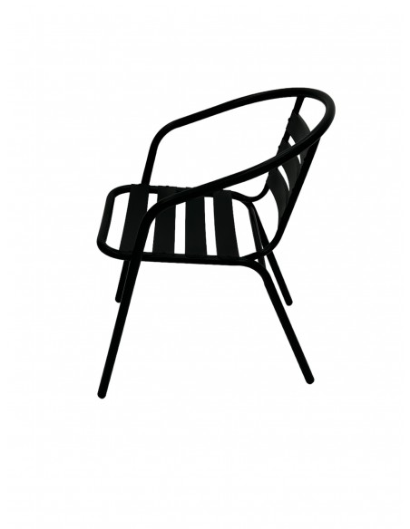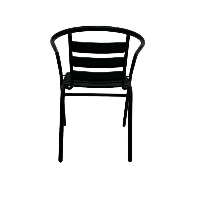 These black steel garden chairs are suitable for use in the garden or for cafe’s, fish & chip shops, large sporting events, festivals and restaurants etc. They go well with our range of bistro tables and have plastic feet to prevent scratching the floor. The seat height is 43 cm and they stack tightly for storage.