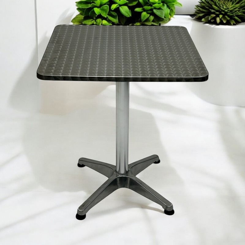 These Aluminium Bolero tables are robust and rustproof, making them perfect for any pavement, terrace, patio or alfresco setting. Each table has a pedestal design with four legs, each of which has an adjustable plastic foot to prevent and markings on the floor. These tables are very versatile and can be used with almost any chair we have listed in our store.