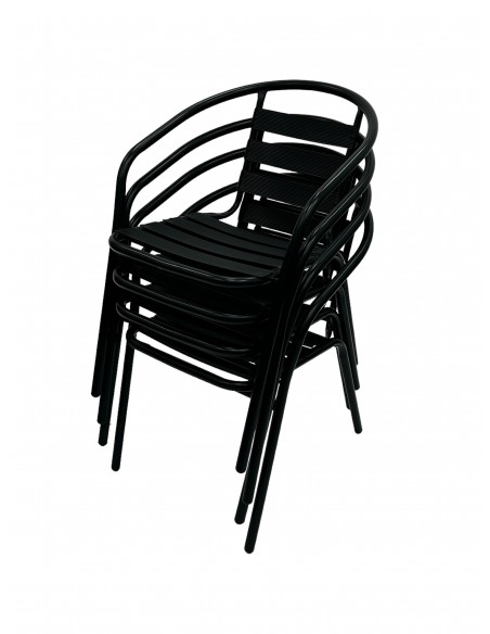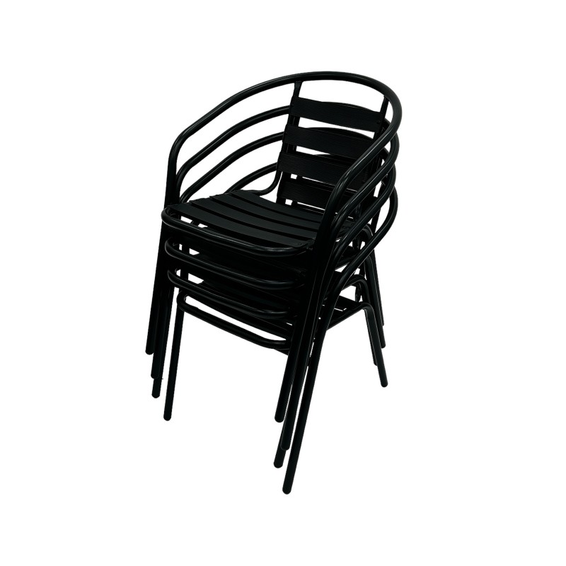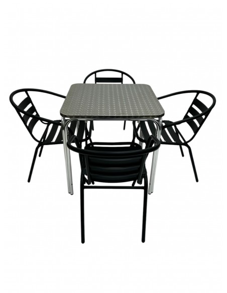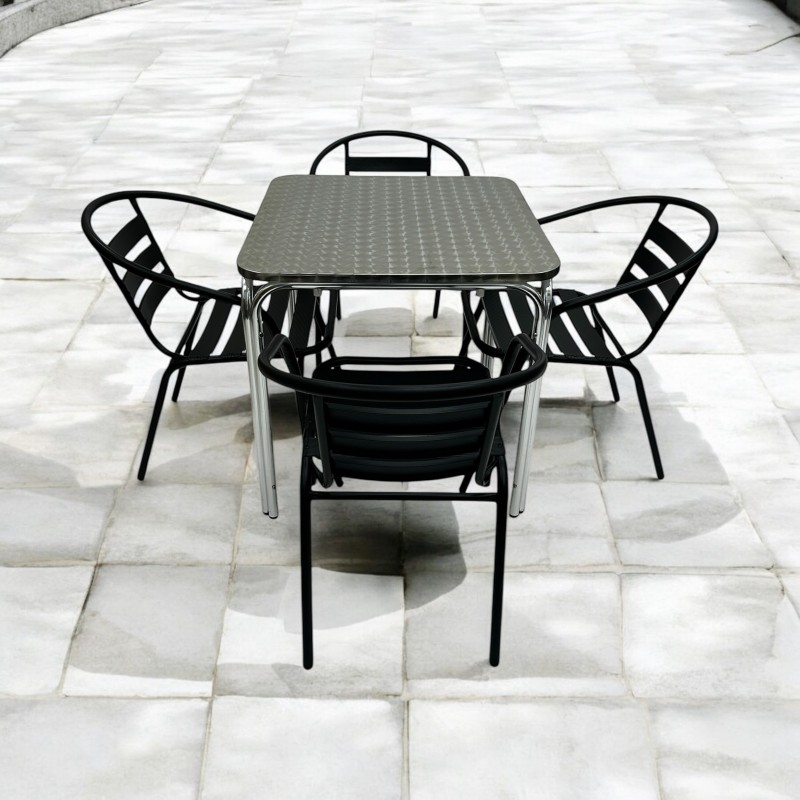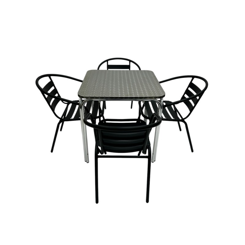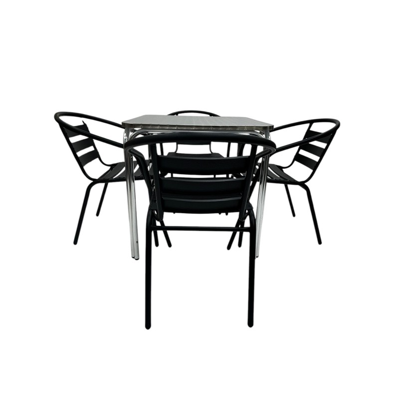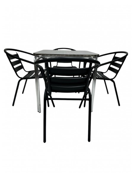 Outdoor Stacking Furniture Set – Aluminium Stacking Table & 4 Black Steel Chairs