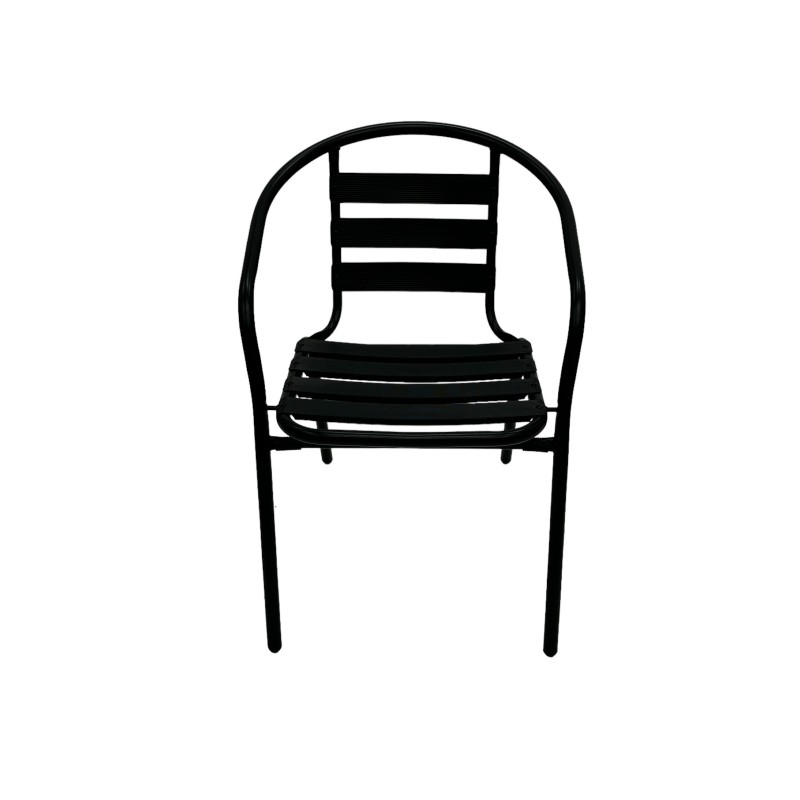 These black steel garden chairs are suitable for use in the garden or for cafe’s, fish & chip shops, large sporting events, festivals and restaurants etc. They go well with our range of bistro tables and have plastic feet to prevent scratching the floor. The seat height is 43 cm and they stack tightly for storage.