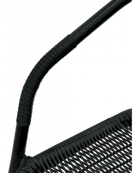 The Rattan Garden Set in Black is a stylish and functional outdoor seating option for cafes, bistros, gardens, and pavement seating. The set includes one 70cm round aluminium bistro table and four black rattan chairs with black metal frames. The bistro table is 70cm in diameter, providing ample space for dining and drinks. The chairs are standard size and designed to provide comfortable seating. The set is easy to clean and maintain, making it perfect for high-traffic areas. The sleek design of the set will complement any décor and add a touch of elegance to any outdoor space.