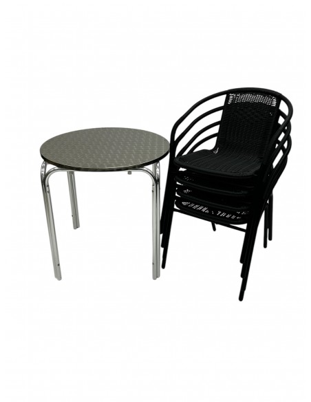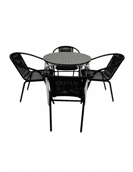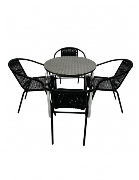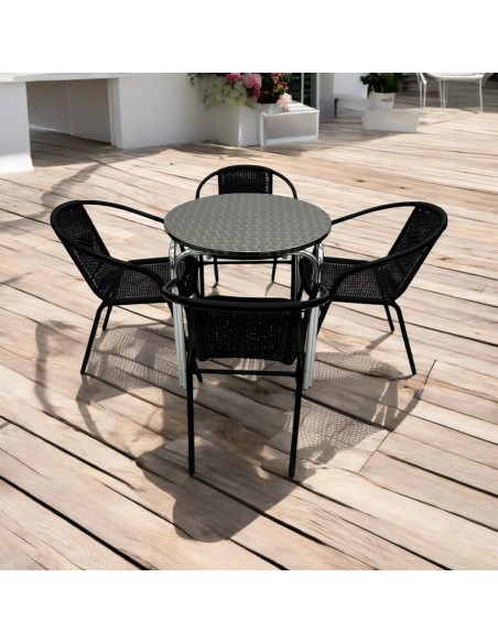 Rattan Garden Set in Black – Aluminium Round Table & 4 Rattan Steel Chairs