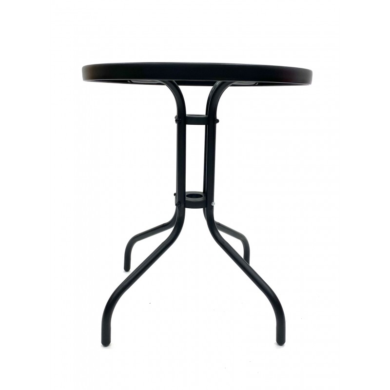 This weather-resistant tempered glass garden table will be a great choice for dining in the garden, on the patio, or in cafes and restaurants. These tempered glass tables have a 60 cm round table top with a 5 cm hole in the centre for a parasol, which can be purchased separately from us here at BE Furniture Sales. These tables are easy to keep clean and have a metal frame so can be used indoors or outdoors all year round.