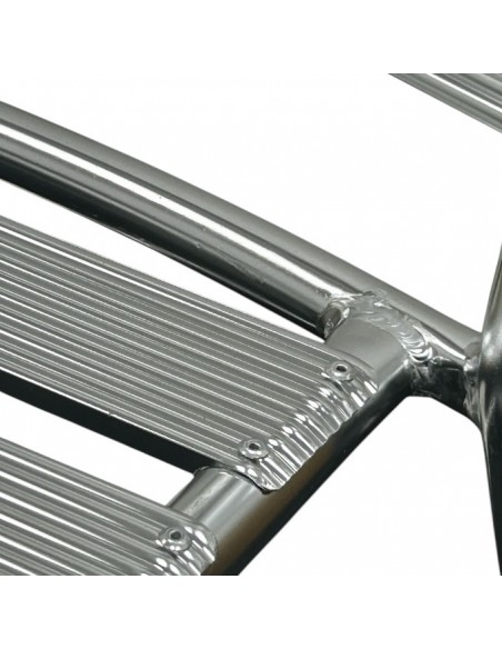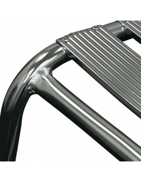 Manufactured to our specifications these light weight aluminium stools have a polished finish making them ideal for use both indoors or outdoors all year round. With a lightweight construction, these stools allow you to create an affordable way of seating 100’s of guests yet when not in use they are easy and lightweight to stack away. Each stool has a high quality 2.8cm diameter frame which is welded together to give much more strength over the same stools that are bolted together. The stools then have three aluminium slats to sit on plus a further aluminium slat and support bar on the back of the stool. Being made from aluminium construction these stools are also weather resistant so fine to be used outdoors all year round.