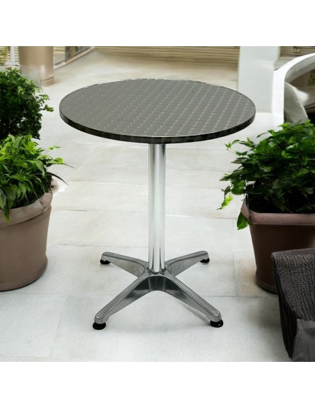 These Aluminium Bolero tables are robust and rustproof, making them perfect for any pavement, terrace, patio or alfresco setting. Each table has a pedestal design with four legs, each of which has an adjustable plastic foot to prevent and markings on the floor. These tables are very versatile and can be used with almost any chair we have listed in our store.