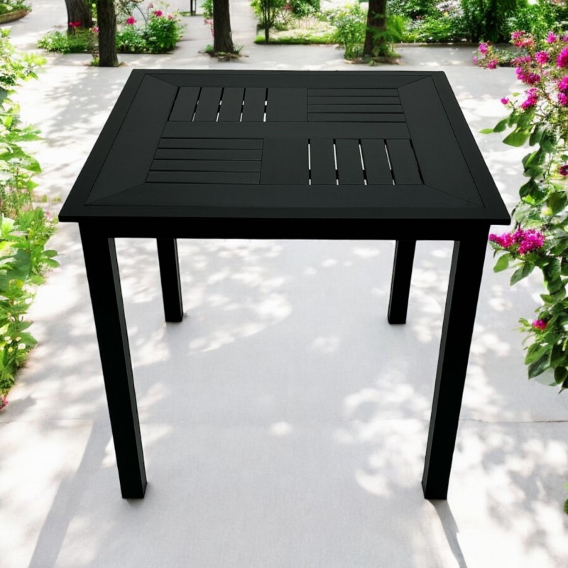 Our Stunning BE Furniture 80cm Square Black Bistro Table, with an 80 cm square poly wood table top with black aluminium edging and legs, perfect for commercial or home use.