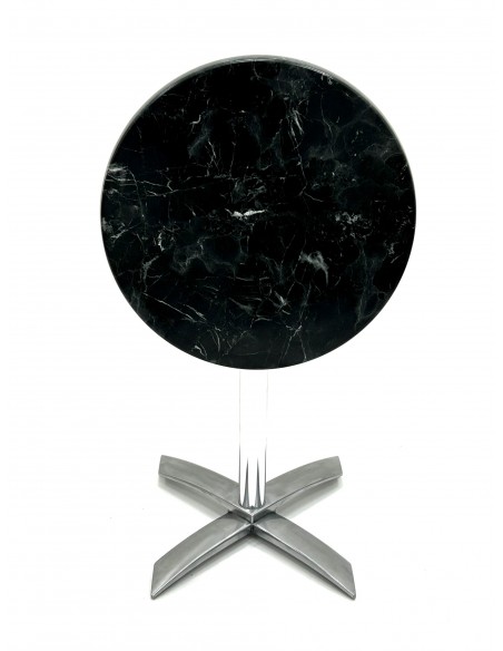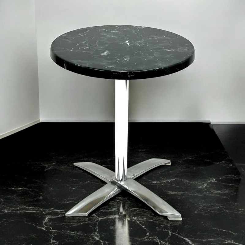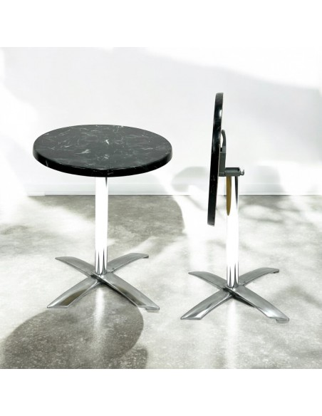 Brand New 60 cm diameter Monaco Flip Down Bistro Tables with a choice of 4 high quality table top finishes and an aluminium flip down table base.