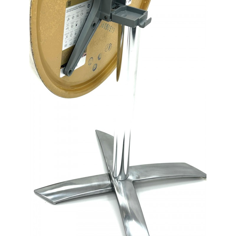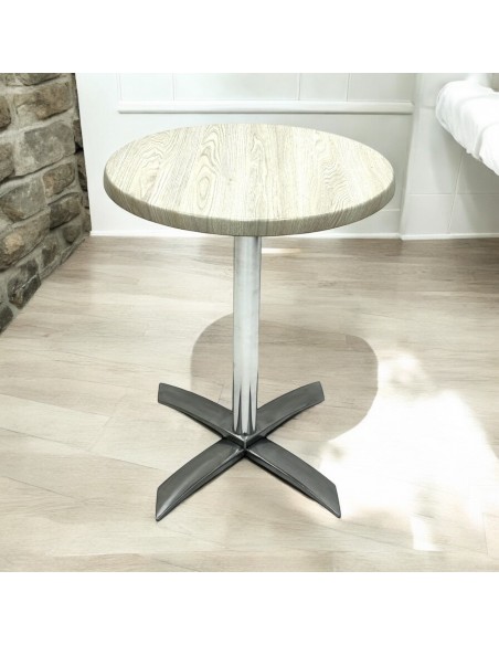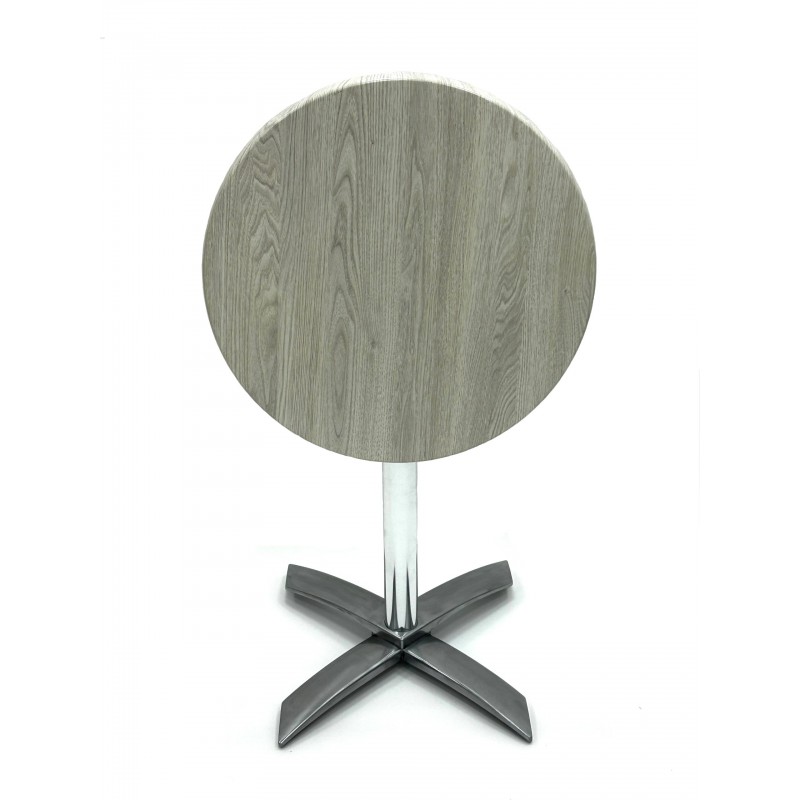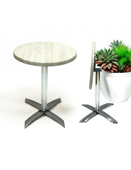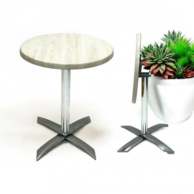 Brand New 60 cm diameter Monaco Flip Down Bistro Tables with a choice of 4 high quality table top finishes and an aluminium flip down table base.