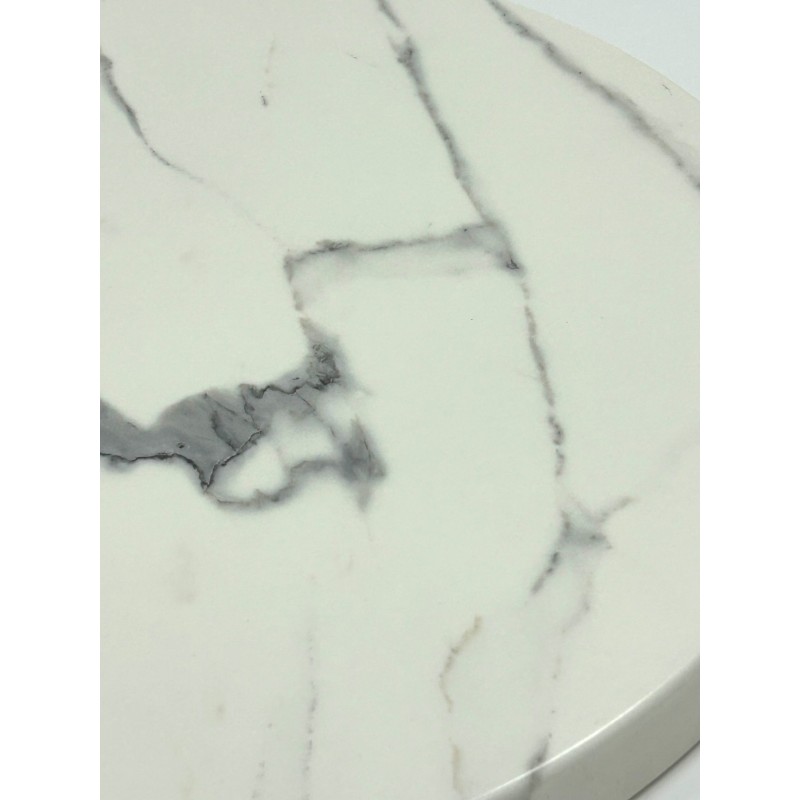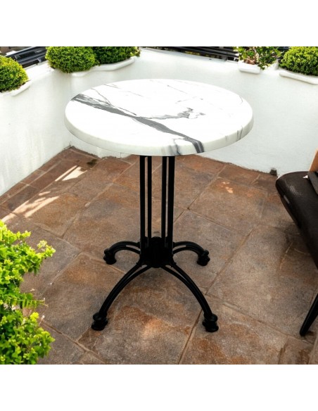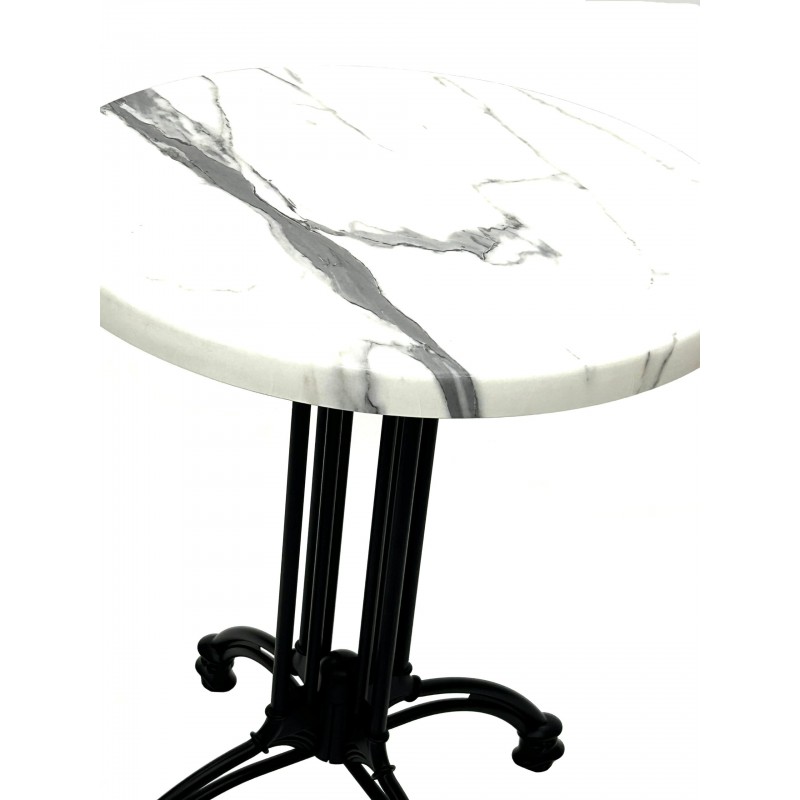 Brand New 60 cm diameter Misano bistro table with a Romeo White Marble table top finish and a cast aluminium table base.