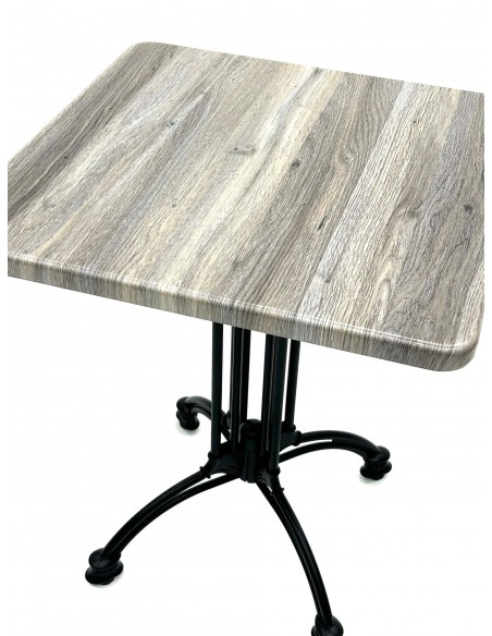 The bistro table tops are 3 cm deep and come with a choice of five finishes, Light Wood, Marble, Grey, Mid Wood and Natural.