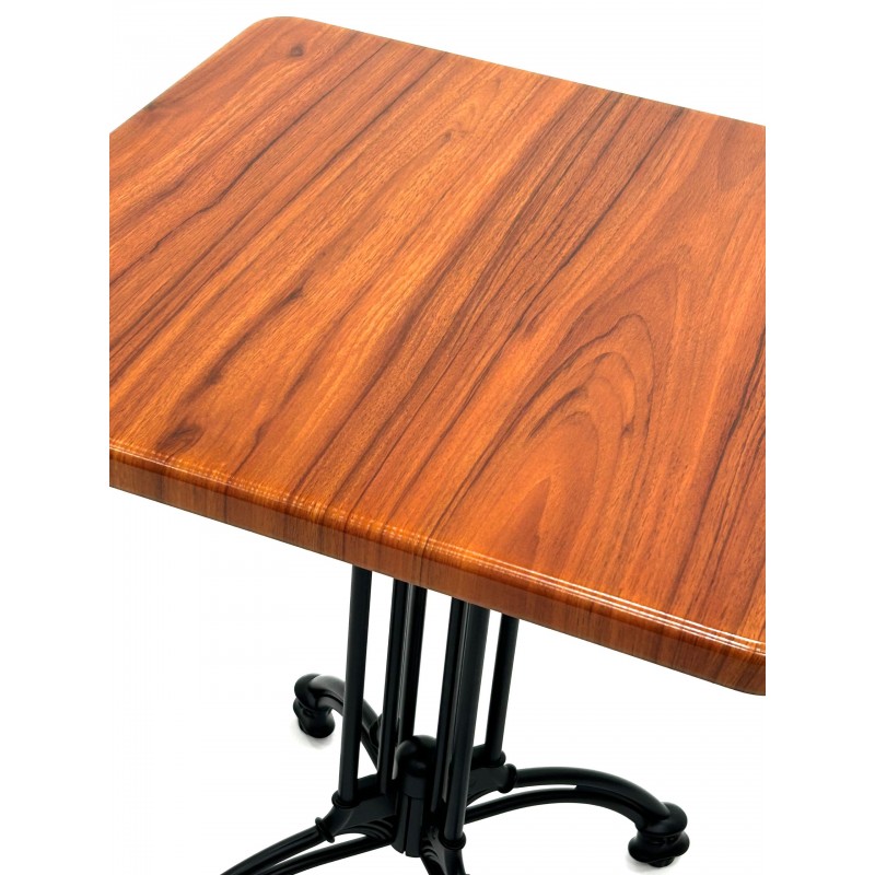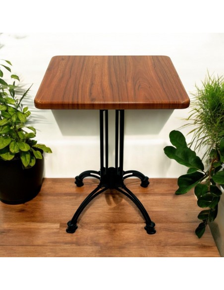 Brand New 60 cm square Monza bistro table with a Mid Wood Effect table top and a cast aluminium table base.