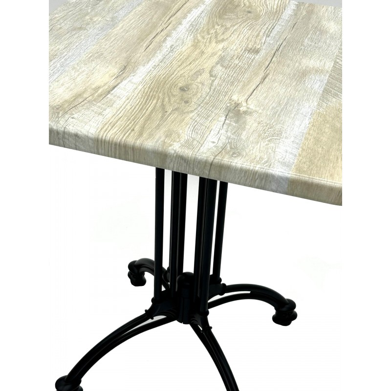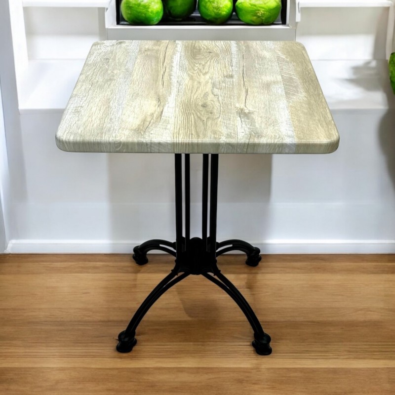 Brand New 60 cm square Monza bistro table with a Natural Wood Effect high quality table top and a cast aluminium table base.