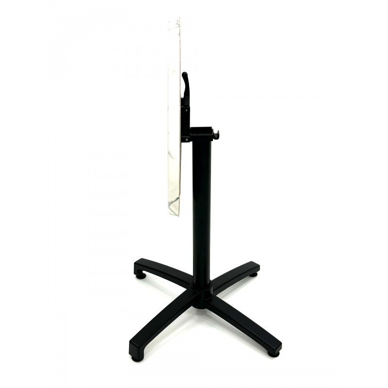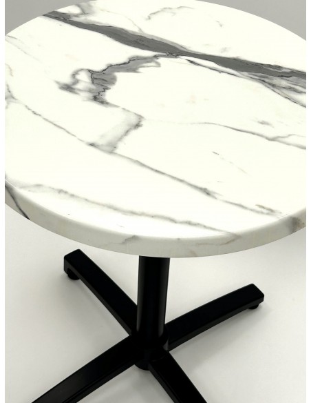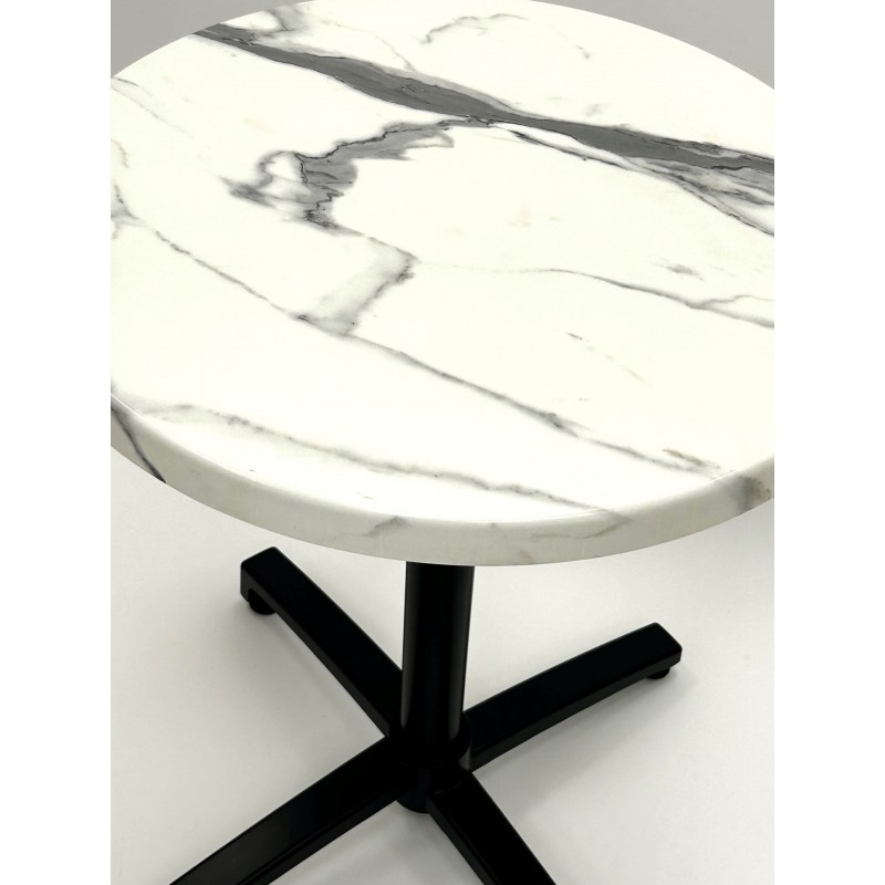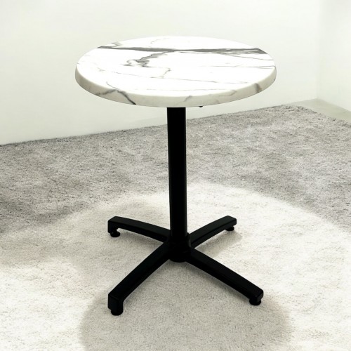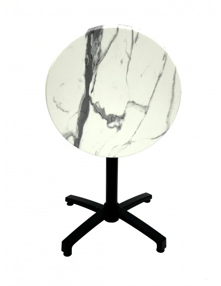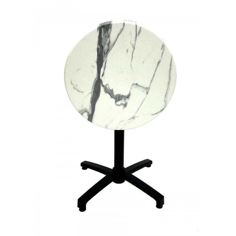 Brand New 60 cm diameter Imola bistro table with a Romeo White Marble table top finish and a black flip down table base.