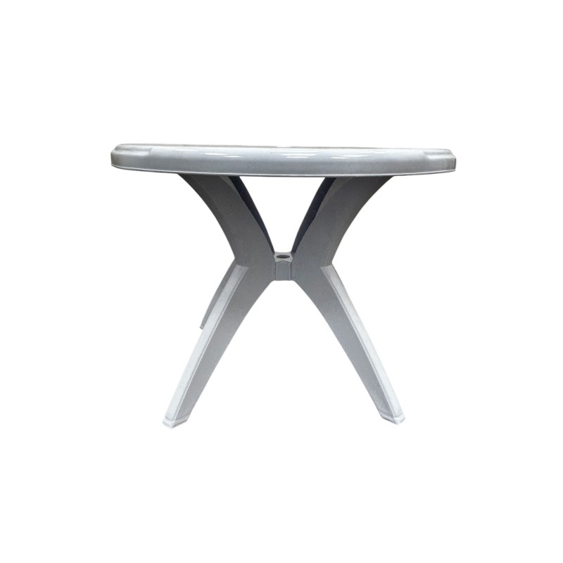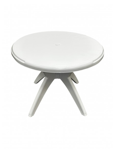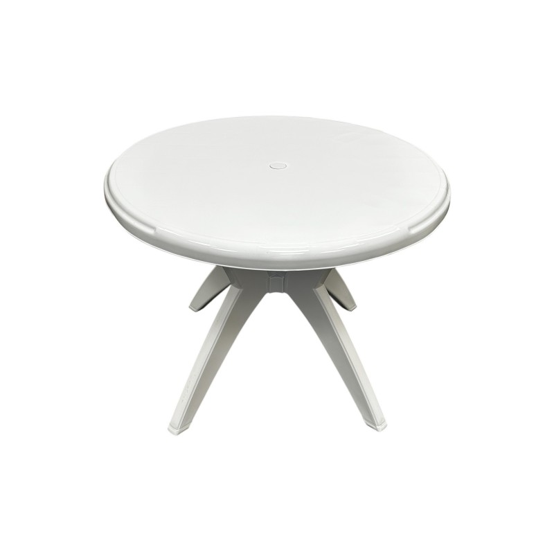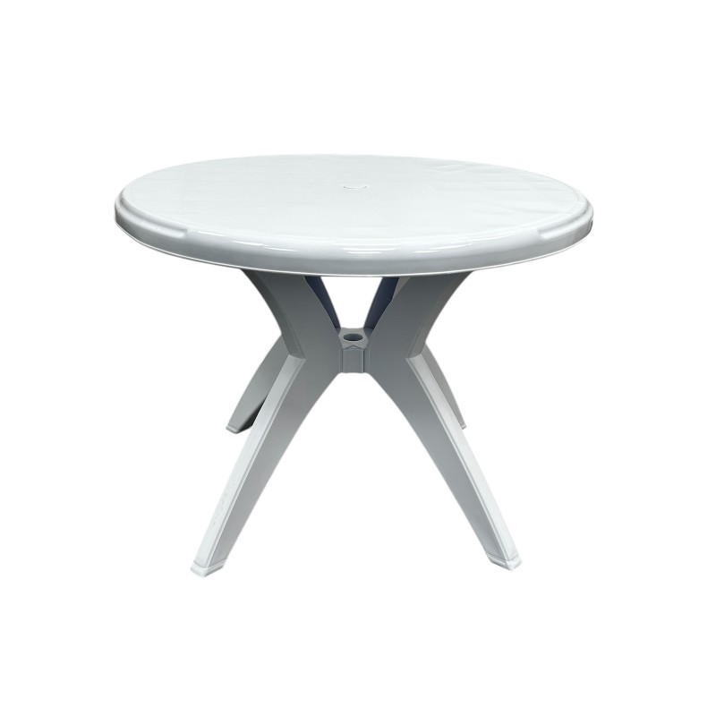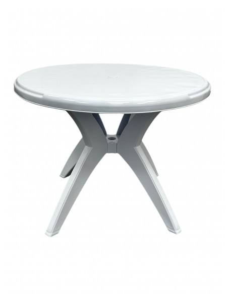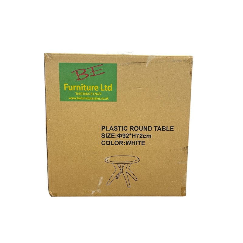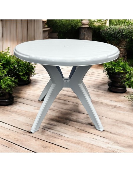 The white plastic table is the perfect addition to any garden, patio or decking. This stylish round patio table features a 90 cm round white plastic table top and 4 sturdy white plastic legs. The table also has a 4 cm hole in the centre so is compatible for use with a garden parasol. Its sturdy and durable construction ensures it can be used both indoors and outdoors all year round. This table is not only functional but also great value for money, making it the perfect choice for any home or business looking for all year round tables. Its versatility makes it a great investment for anyone looking to add a touch of elegance to their space.