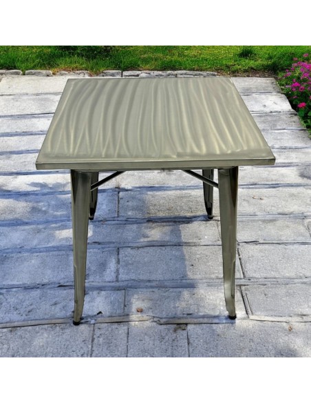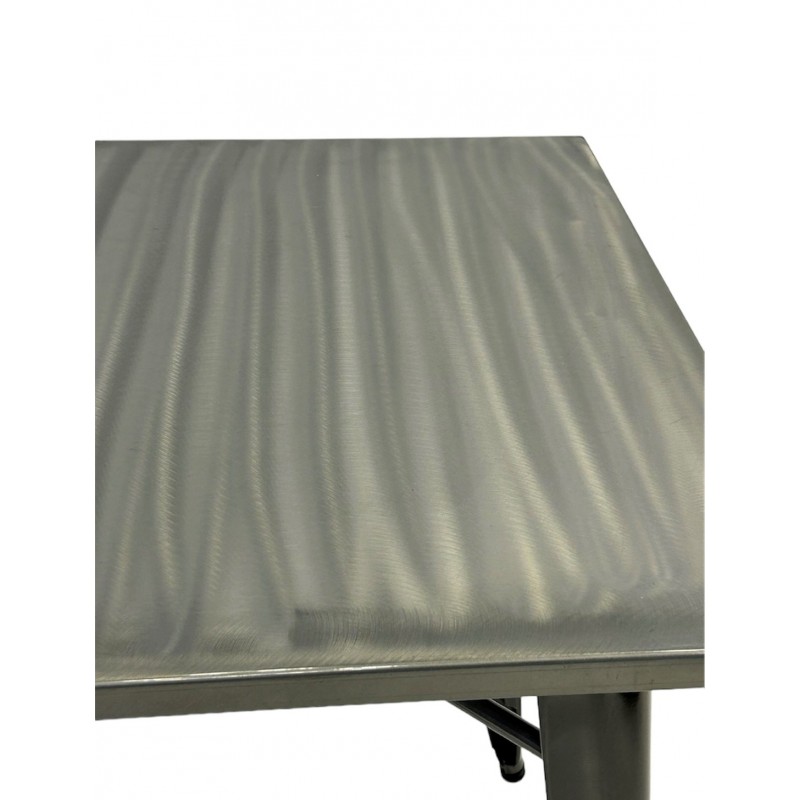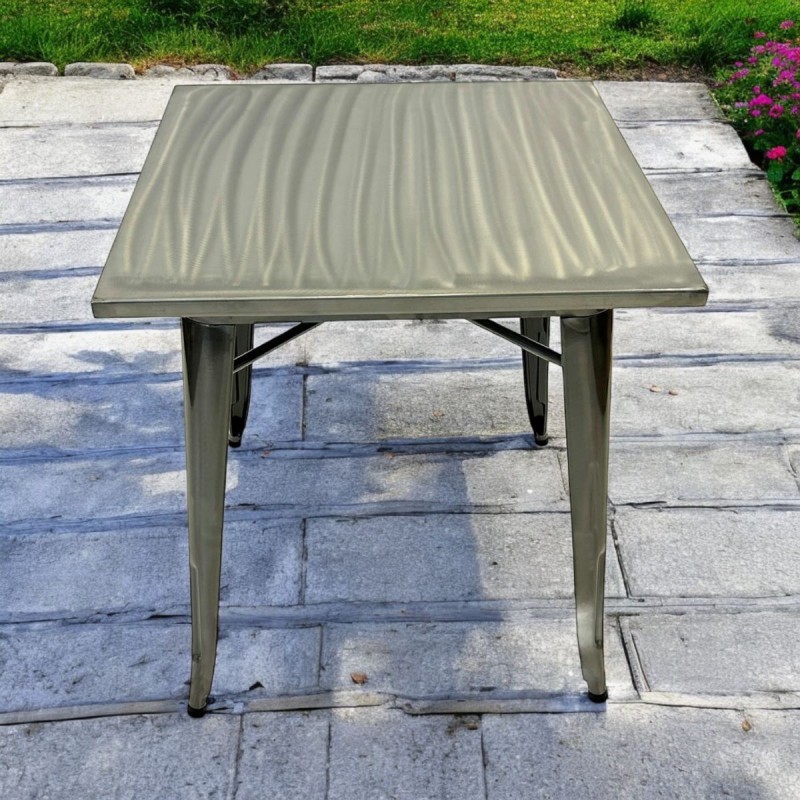 Their durability is a built-in feature with these tables and they are designed for heavy industrial use. At the same time, this furniture is lightweight making set up and tear down just as easy. These silver metal tolix tables are suitable for use for cafe’s and restaurants etc. They go well with our range of Tolix chairs and have plastic feet to prevent scratching the floor. These tables are 70 cm x 70 cm in size and stand 75 cm tall.