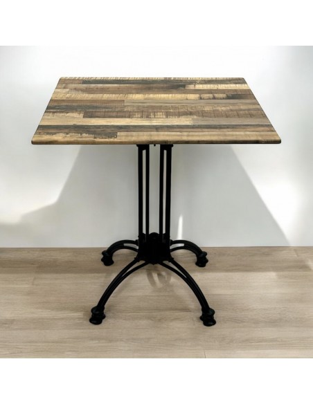 Brand New 70 cm Square Algarve bistro table with a Rustic Maple table top finish and a cast aluminium table base.