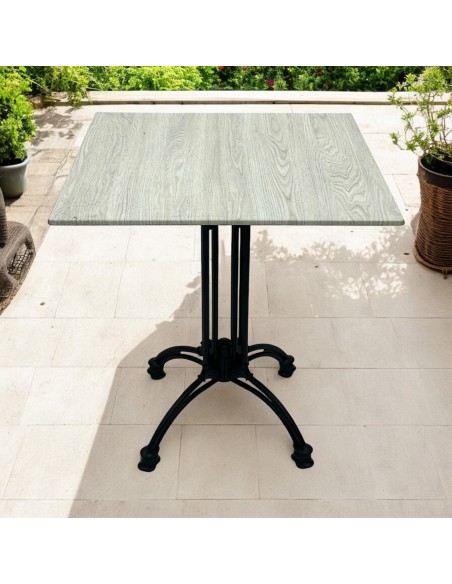 Brand New 70 cm Square Algarve bistro table with a White Driftwood table top finish and a cast aluminium table base.