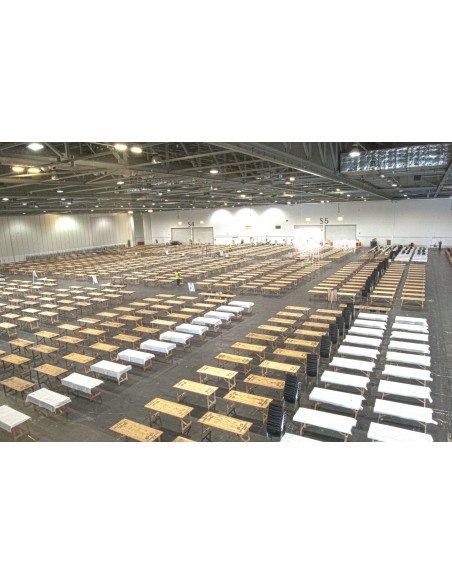 These wooden trestle tables come ready built, ready to use.