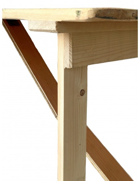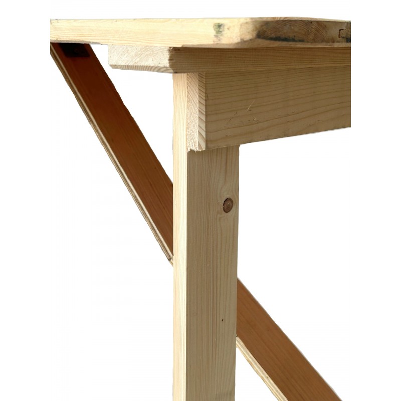 Built and modified to our specifications since the 1970’s these tables have a 2 cm thick tongue and groove table top making them much stronger and more robust than many other wooden tables you can find on line. We have tested these products for over 50 years now with our sister company, BE Event Hire who have around 10,000 of these tables in hire stock and they last for years. With a strong robust top and stacking battens, these tables allow you to create an instant event space yet when not in use they stack neatly and take up very little space. These wooden trestle tables can regularly be seen at music festivals and Oktoberfest’s around the Country with 2 – 3 people standing and dancing on them, they really are that strong.
