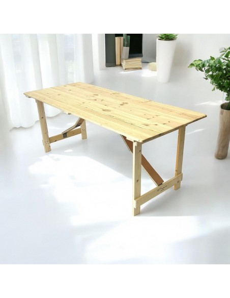 These wooden trestle tables are the work horse of the events industry and venues around the country and comfortably seats 6 people (3 down each side). Each table has a 2cm thick tongue and groove wooden table top, strong folding wooden legs that lock out securely with a wooden hinge and stacking battens.