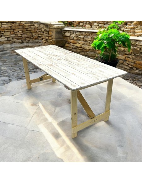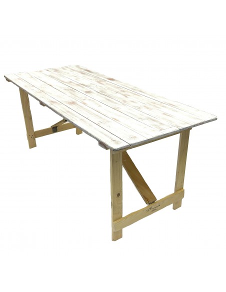 Brand New 6ft x 2ft6 inch Distressed Limewash 6ft Trestle Table with sturdy wooden folding legs, the strongest trestle tables on the market.