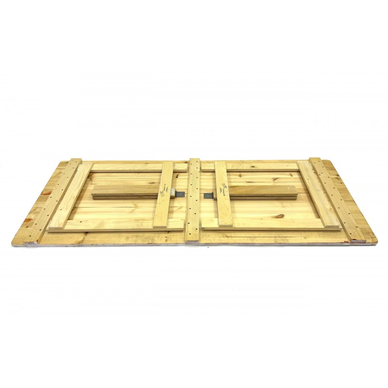 Built and modified to our specifications since the 1970’s these tables have a 2 cm thick tongue and groove table top making them much stronger and more robust than many other wooden tables you can find on line. We have tested these products for over 50 years now with our sister company, BE Event Hire who have around 10,000 of these tables in hire stock and they last for years. With a strong robust top and stacking battens, these tables allow you to create an instant event space yet when not in use they stack neatly and take up very little space. These wooden trestle tables can regularly be seen at music festivals and Oktoberfest’s around the Country with 2 – 3 people standing and dancing on them, they really are that strong.