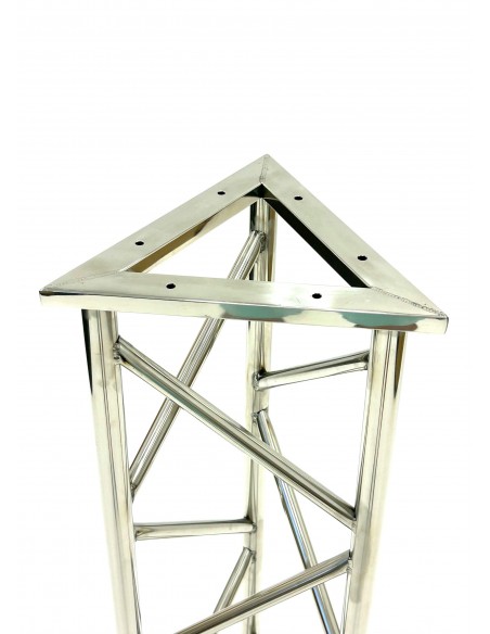 These stainless steel truss high table bases are perfect if you are looking for something to really stand out in a reception, on a trade stand or even in a club, bar or restaurant. Each table base has a stunning stainless steel finish with a base diameter of 50 cm and come with small rubber bungs under the base so suitable to be used on any floor surface. The stainless steel construction allows for heavy use without the worry of corrosion and also excels in its resistance to most impact damage. Each stainless steel truss table base comes with six pre drilled holes in the top to allow easy fixing to any table top that is on the market.