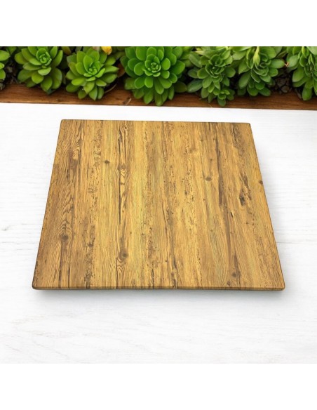 Stylish 70 cm square Aged Pine Effect Square Table Tops, commercial grade for heavy commercial use and perfect for use indoors or outdoors.