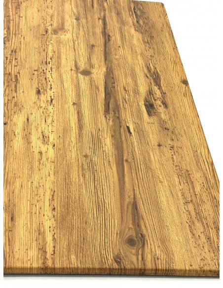 These stylish, modern and minimalist designs complement today’s hospitality and dining environments. These stunning high quality Aged Pine effect table tops are compression-moulded ISOTOP tabletops and have a seamless surface. This results in a robust, long lasting product. These tables are EN438 certificated for European standard for laminated surface quality and E1 Emission standards compliant. They are also SGS high weather resistance certified and TUV High surface resistance certified.