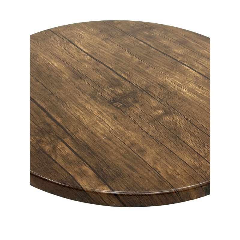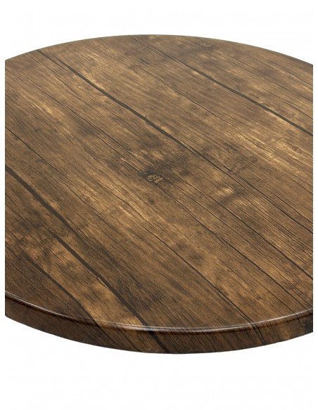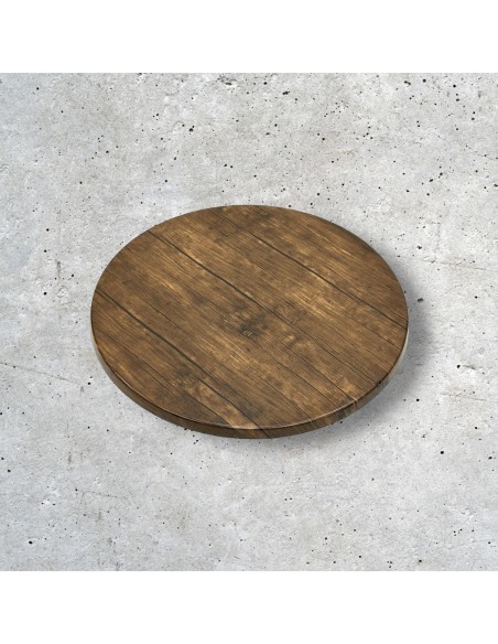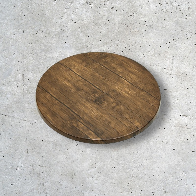 Stylish 70 cm round Dark Oak Effect Tops, commercial grade for heavy commercial use and perfect for use indoors or outdoors.