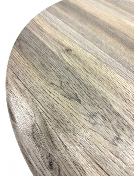 Each light grey cafe table top is 3 cm deep and 70 cm in diameter and designed for indoor use.