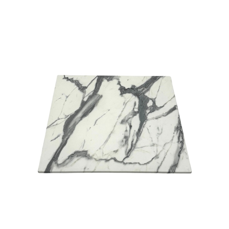 New for 2023, Stylish 70 cm White Marble Effect Square Table Tops, commercial grade for heavy commercial use and perfect for use indoors or outdoors.