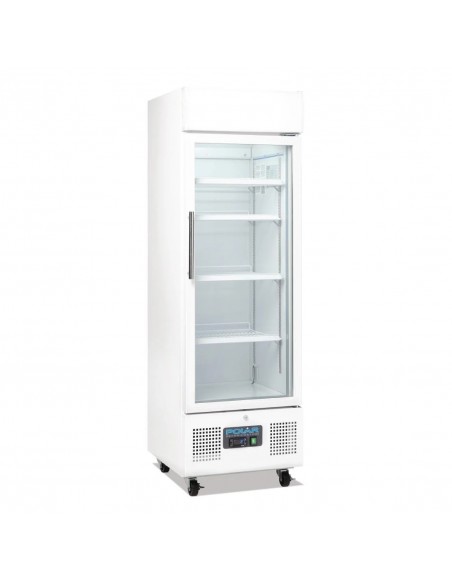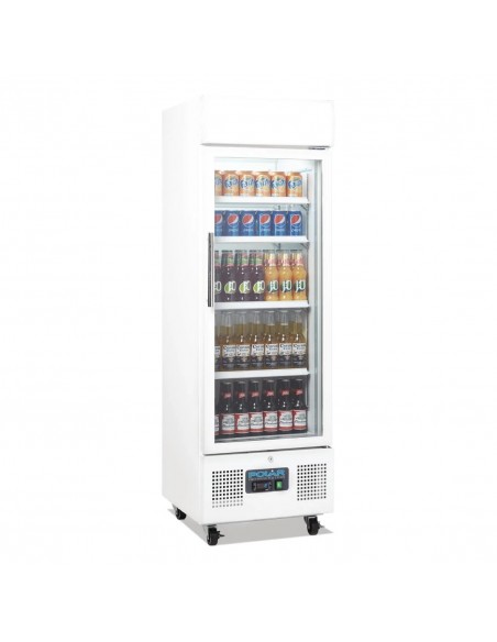Polar DM075 G-Series Upright Display Fridge 218Ltr White. If you're looking for a reliable food and drink display solution, the Polar G-Series chilled display fridge is a fantastic space-saving option. Offering storage over four sturdy adjustable shelves, there's plenty of room for your best-selling beverages and snacks - all whilst being perfectly highlighted with stylish lighting.