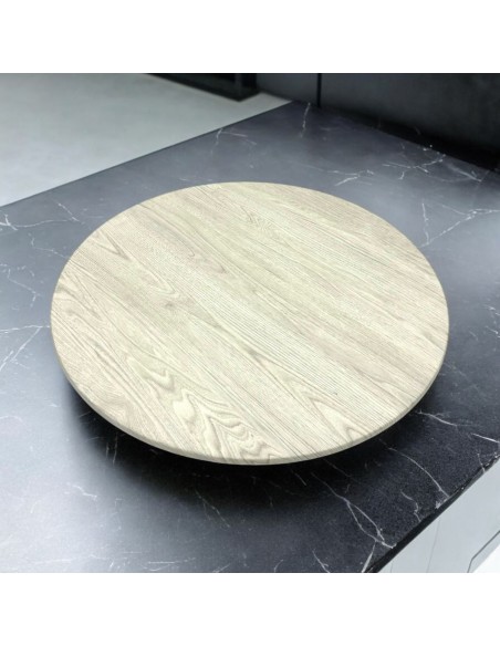 These stylish, modern and minimalist designs complement today’s hospitality and dining environments. These stunning high quality White Driftwood Effect Round Table Tops are compression-moulded ISOTOP tabletops and have a seamless surface. This results in a robust, long lasting product. These tables are EN438 certificated for European standard for laminated surface quality and E1 Emission standards compliant. They are also SGS high weather resistance certified and TUV High surface resistance certified.