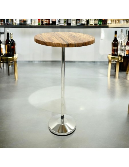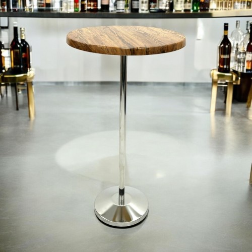 Brand New 60 cm diameter Rivazza high tables with a choice of 4 high quality table top finishes and a silver stainless steel pedestal base.