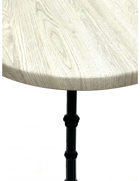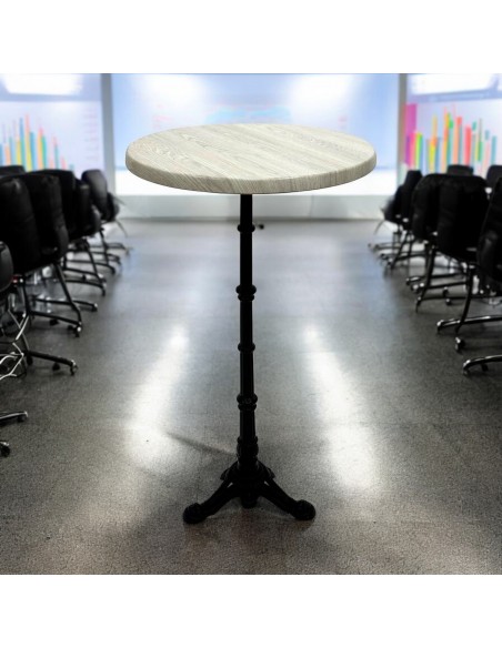 Brand New 60 cm diameter Stavelot High table with a White Driftwood table top and a cast iron table base.