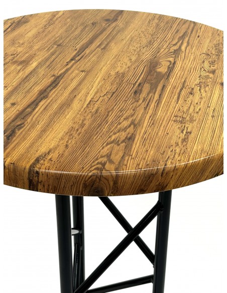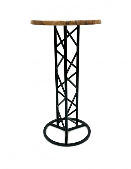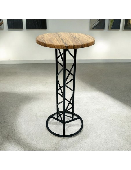Brand New 60 cm diameter Stowe Truss High Tables with a choice of 4 high quality table top finishes and a black truss frame.