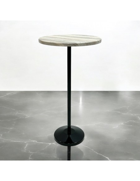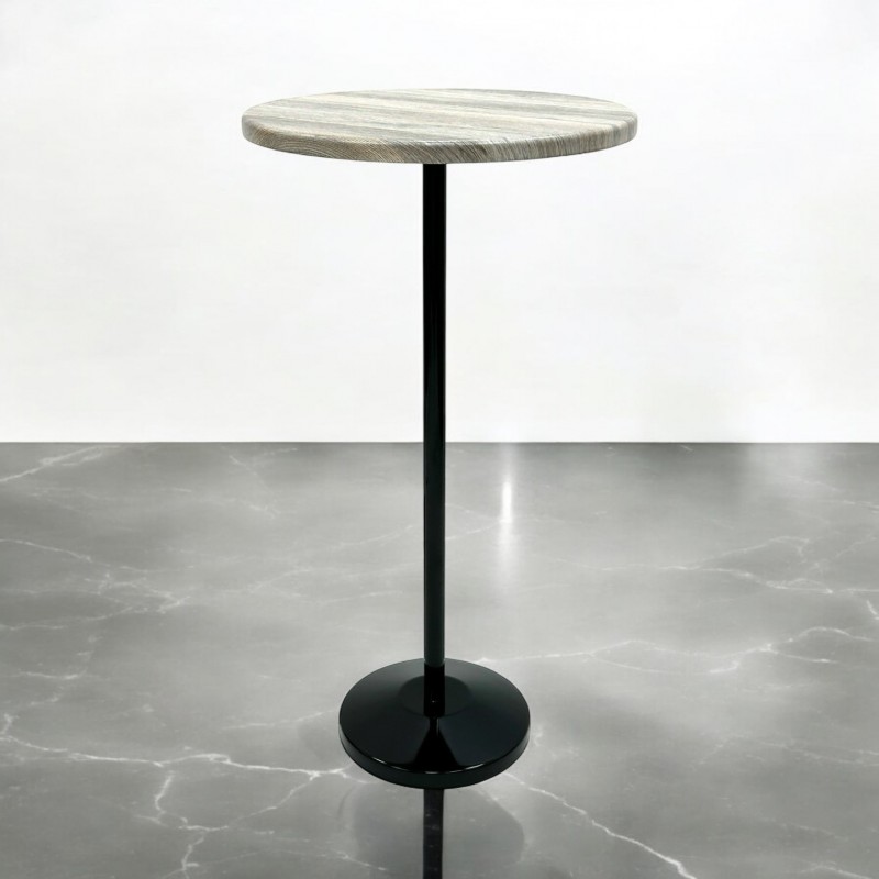 Brand New 60 cm diameter Vale high tables with a choice of 5 high quality table top finishes and a black pedestal base.