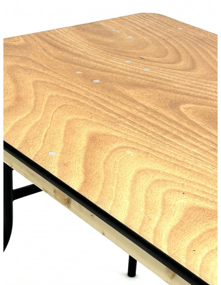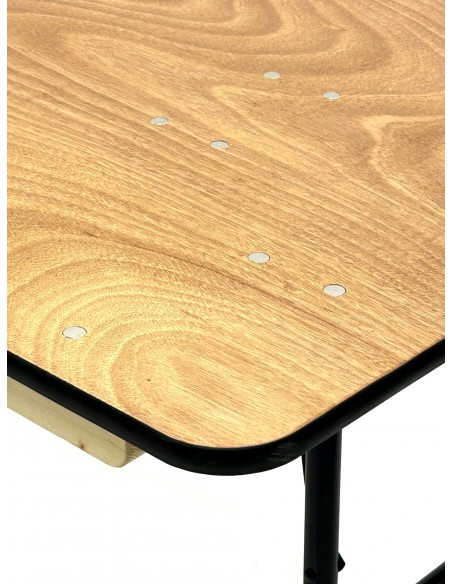 Built to our specifications these tables have a 2 cm thick plywood table top making them much stronger and more robust than many other varnished tables you can find on line. We have tested these products for 20 plus years now with our sister company, BE Event Hire who have over 2,000 of these tables in hire stock and they last for years. With a strong robust top and stacking battens, these tables allow you to create an instant event space yet when not in use they stack neatly and take up very little space.